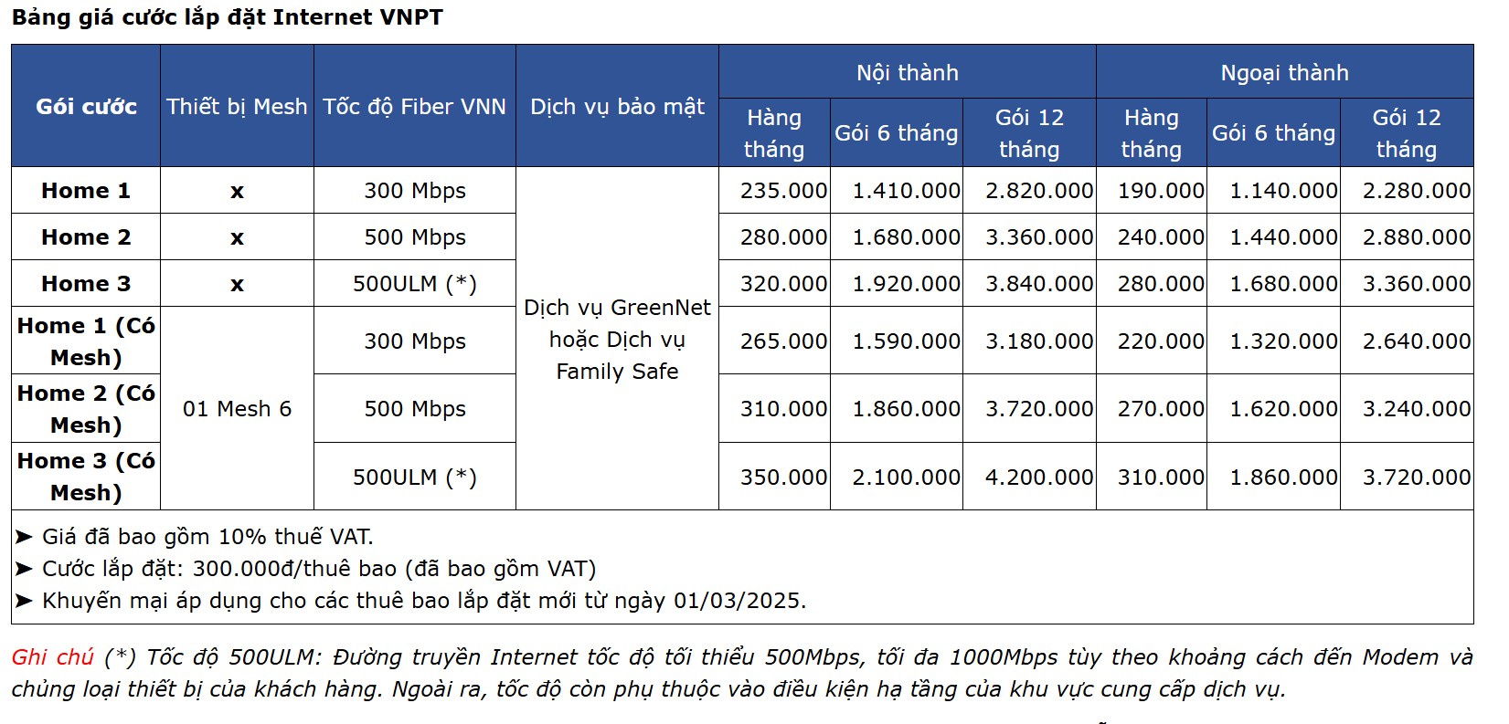 Các gói cước internet VNPT nổi bật tháng 04/2026